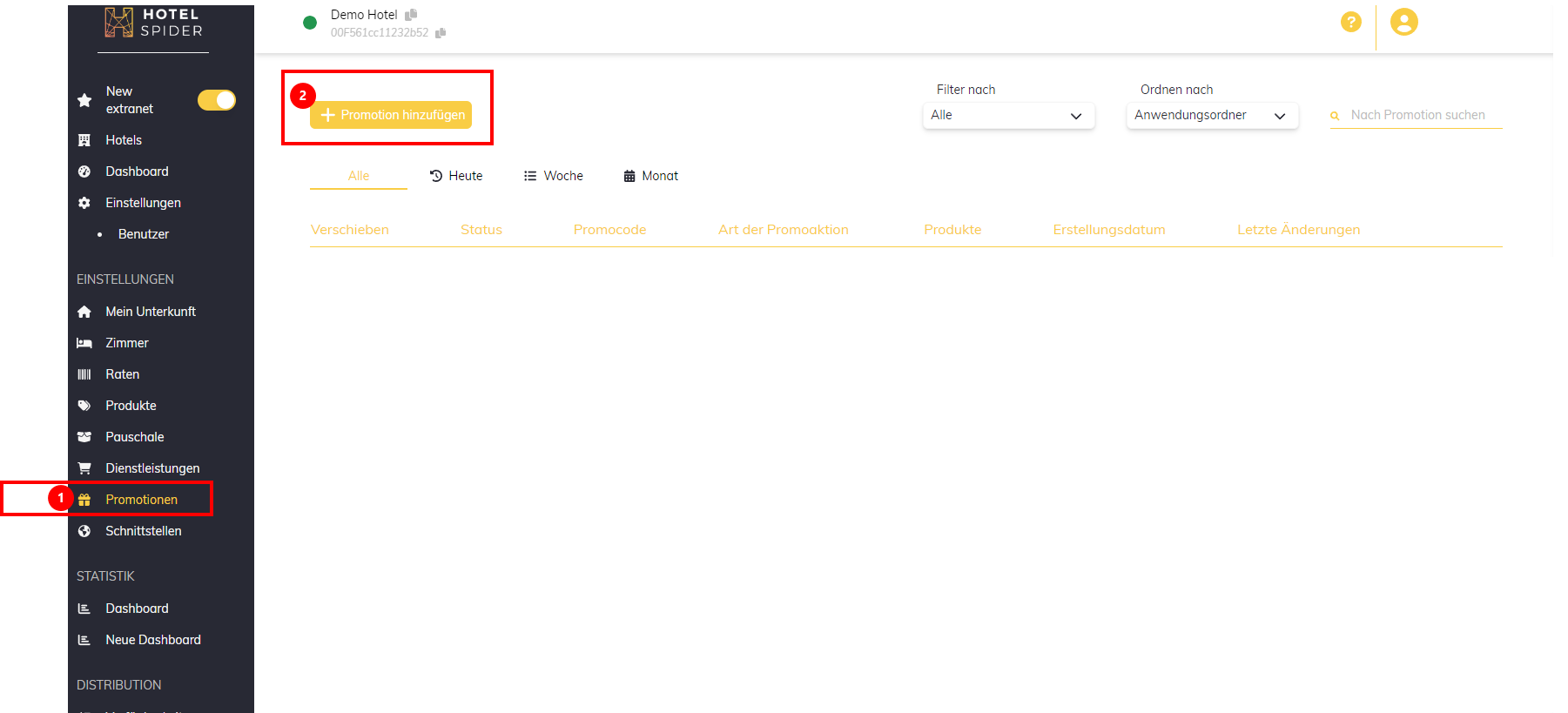 Um eine neue Promotion zu erstellen, klicken Sie oben links auf PROMOTION hinzufügen