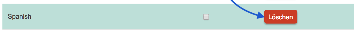 Um eine Sprache zu entfernen klicken Sie auf 'Löschen' und danach auf 'Speichern' am unteren rechten Rand der Seite.